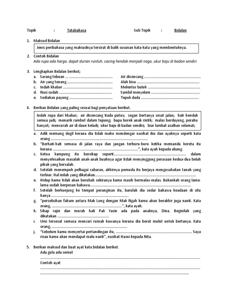 Contohnya, ada gula ada semut, ada rupa ada herga, airdicincang tiada . Contoh contoh peribahasa pt3 bahasa melayu malay language education . Pak kassim sanggup melepaskan jawatan sebagai ketua kampung setelah dia mengetahui anaknya terlibat dengan masalah sosial . Bidalan tidak mengandung sesuatu kata yang tertentu seperti perumpamaan. Perkelahian antara saudara akhirnya berbaik semula. Contoh peribahasa beserta fast track tuition centre facebook . Contoh contoh peribahasa pt3 bahasa melayu malay language education study tips. Bidalan maksud dan contoh ayat.